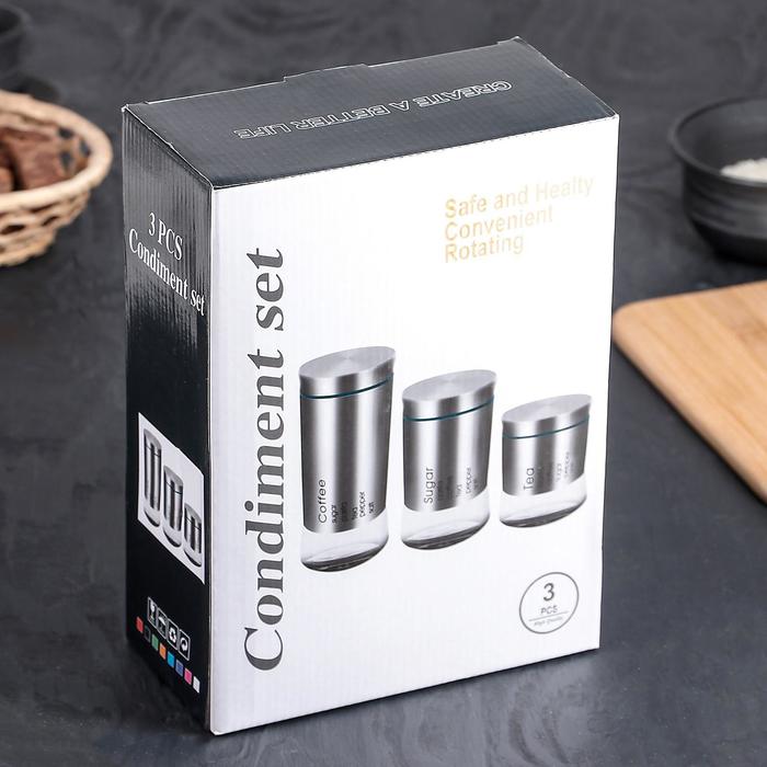 Набор банок стеклянных для сыпучих продуктов «Стиль», 3 предмета: 450/700/1000 мл, цвет серебряный