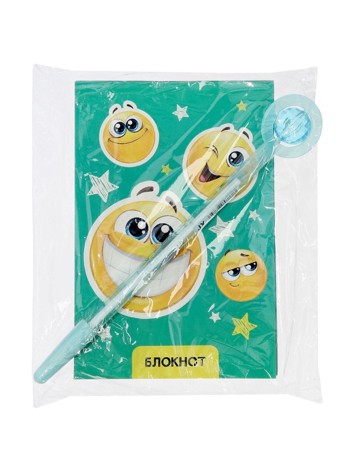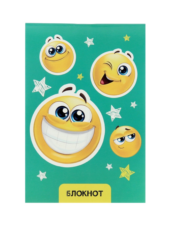 Набор блокнотов 8 шт А6 24л кл на скобе Смайлики, мел карт, бл офс, 4В + ручка МИКС