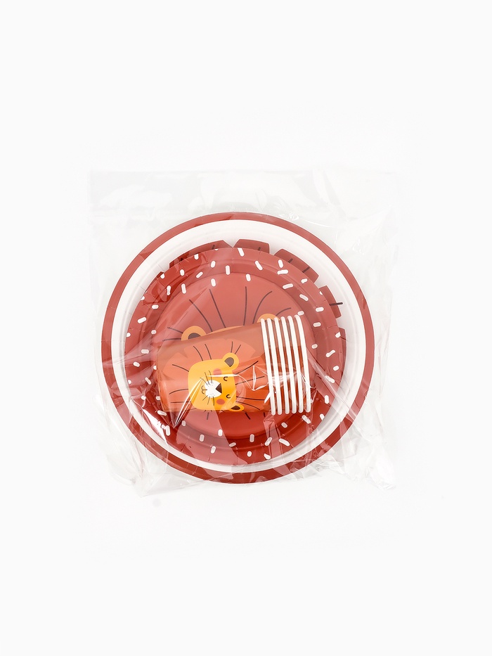 Набор бумажной посуды "Лев" (тарелки 7д-6шт, тарелки 9д-6шт, стаканы- 6шт)