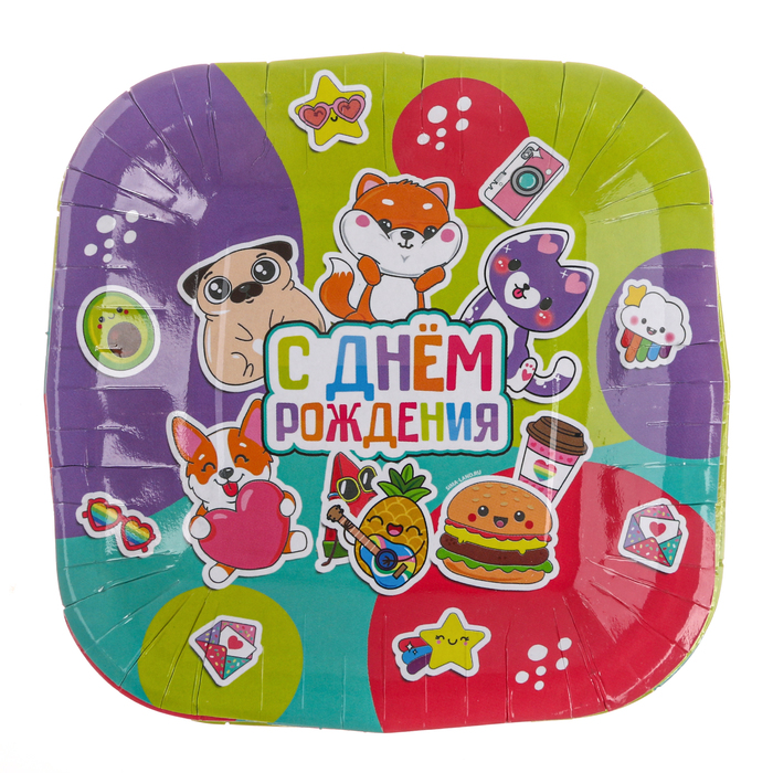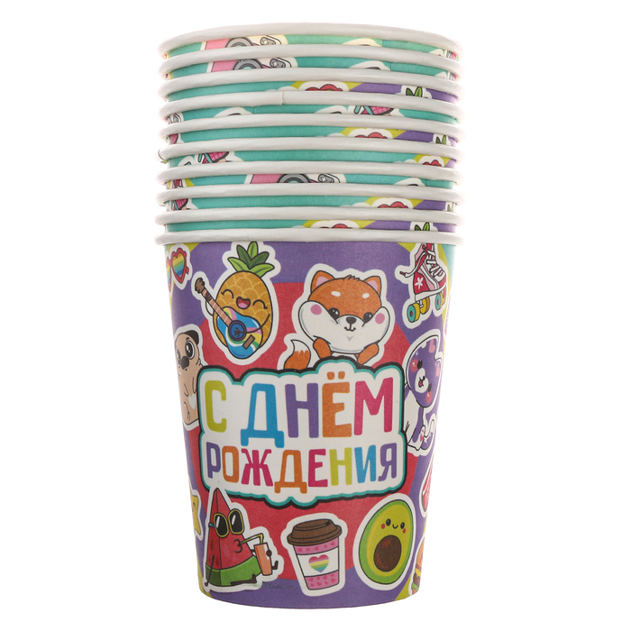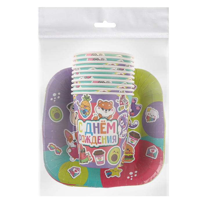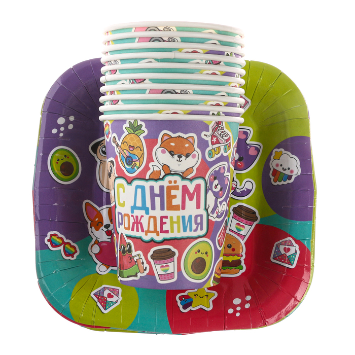 Технические характеристики Набор бумажной посуды одноразовый «Стикер др»: 10 стаканов, 10 тарелок
