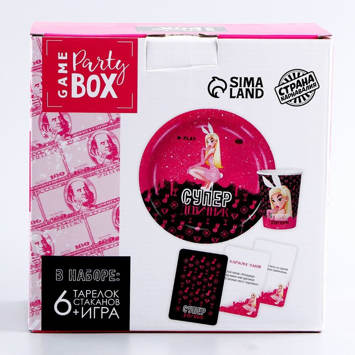 Посуда одноразовая бумажная для праздника «Супер девичник», 6 тарелок, 6 стаканов, игра