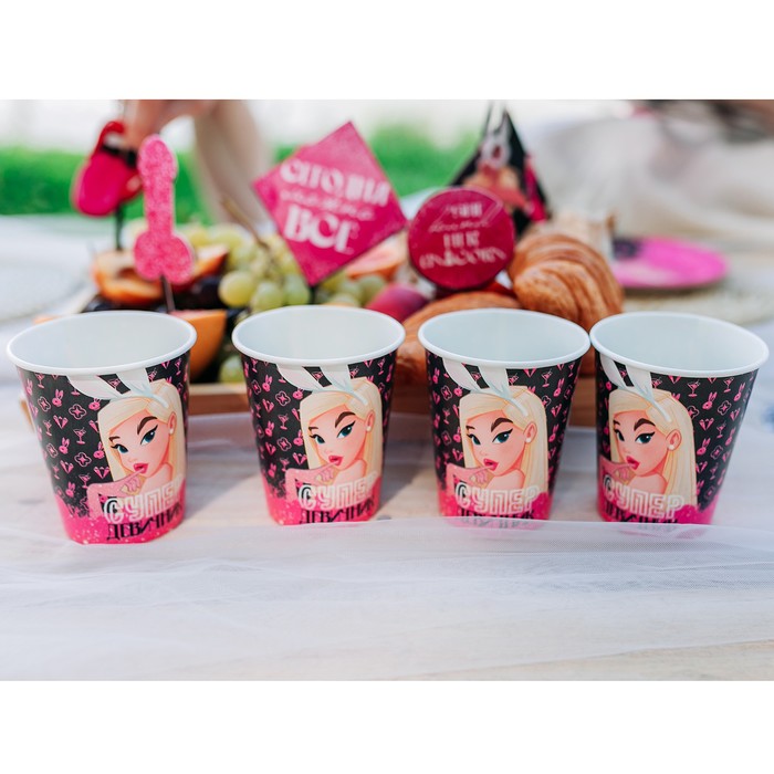 Технические характеристики Посуда одноразовая бумажная для праздника «Супер девичник», 6 тарелок, 6 стаканов, игра