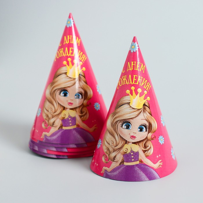Технические характеристики Набор бумажной посуды «С днём рождения. Принцесса»: 6 тарелок, 6 стаканов, 6 колпаков, 1 гирлянда
