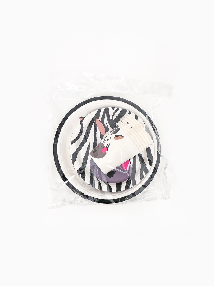 Набор бумажной посуды "Зебра" (тарелки 7д-6шт, тарелки 9д-6шт, стаканы- 6шт)