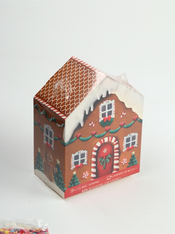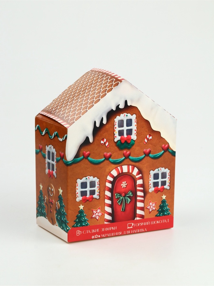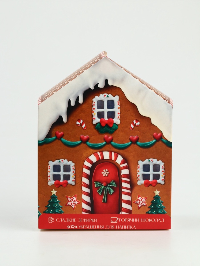 Технические характеристики Подарочный новогодний набор «Пряничный домик»: горячий шоколад 3 шт х 25 г., маршмеллоу 40 г., декор 17 г