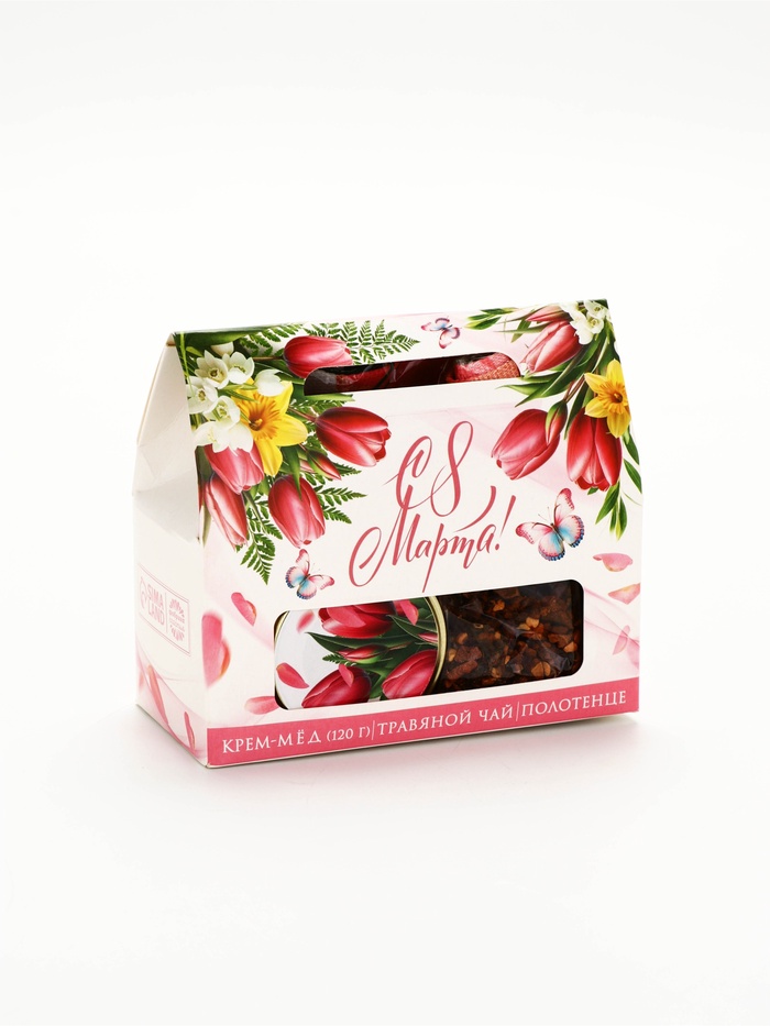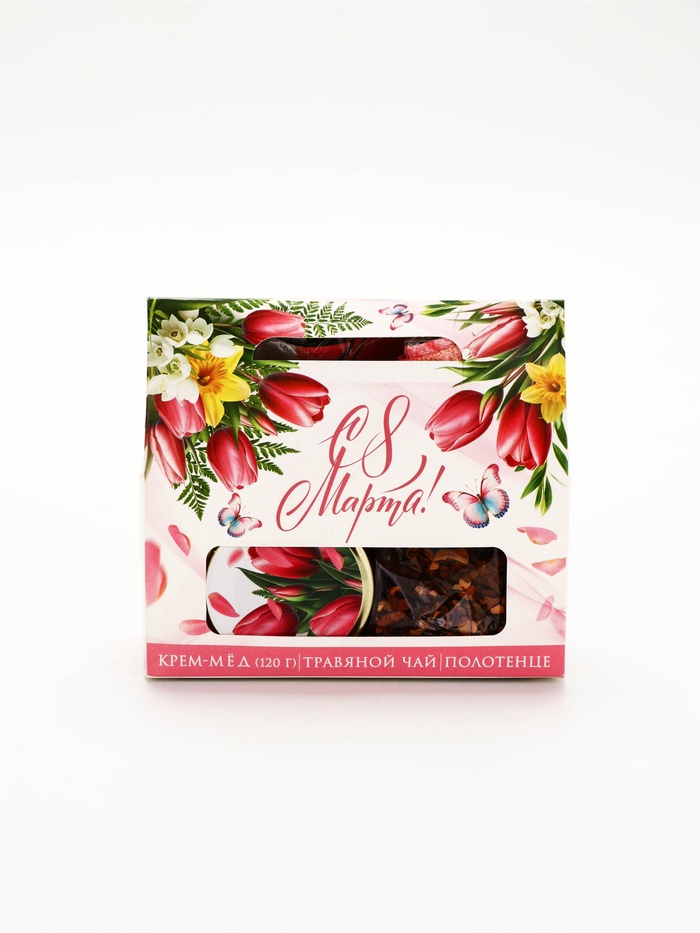 Технические характеристики Подарочный набор «С 8 марта»: крем-мёд 120 г, травяной чай, полотенце