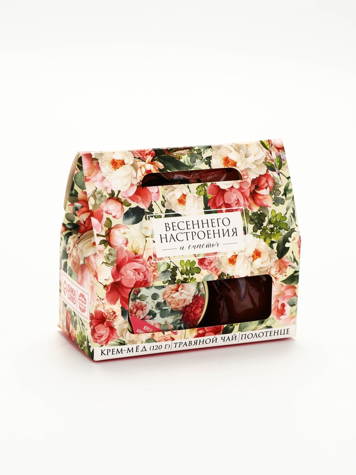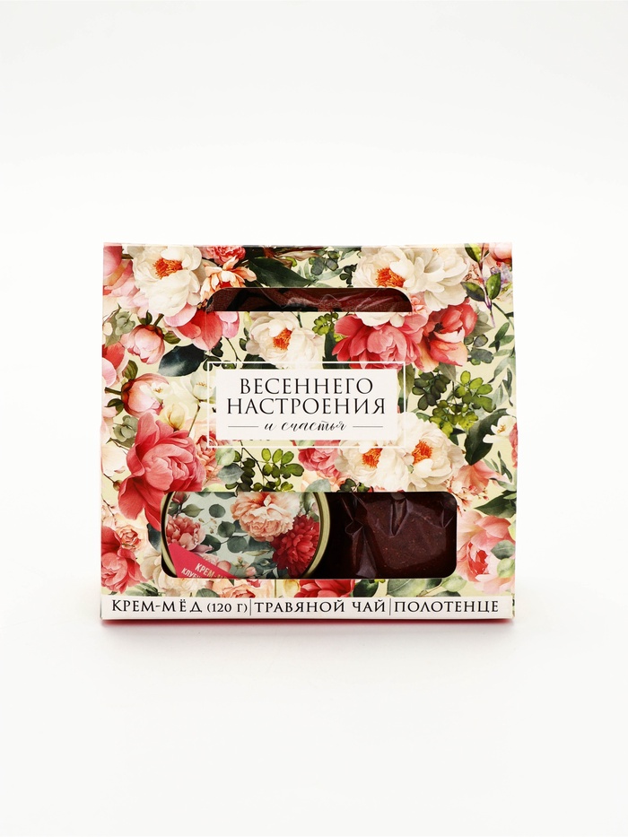 Технические характеристики Подарочный набор «Весеннего настроения»: крем-мёд 120 г, травяной чай, полотенце