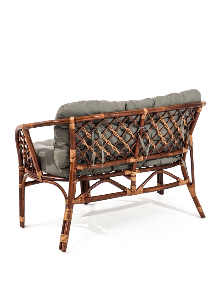 Комплект садовой мебели из ротанга Bagama: 2 кресла, диван, столик, с серыми подушками, коричневый