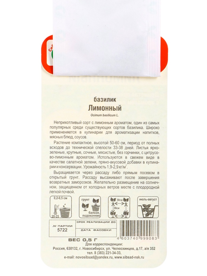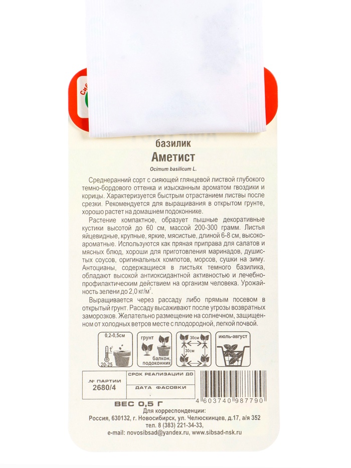 Технические характеристики Набор семян Базилик, 3 упаковки