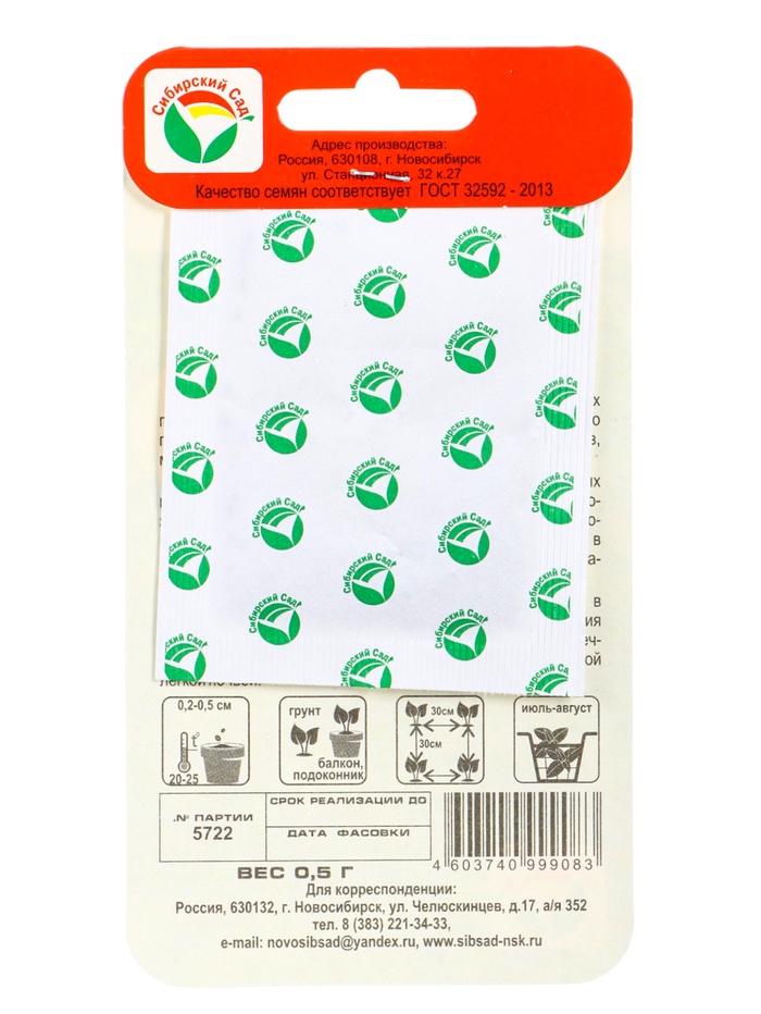| Материалы из которых произведен товарСемена | Минимальная партия1 | НовинкаДа |