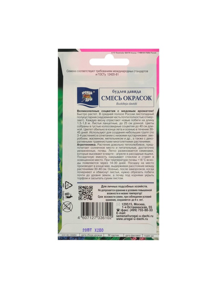 Технические характеристики Набор семян Будлея "Давида", 5 шт.
