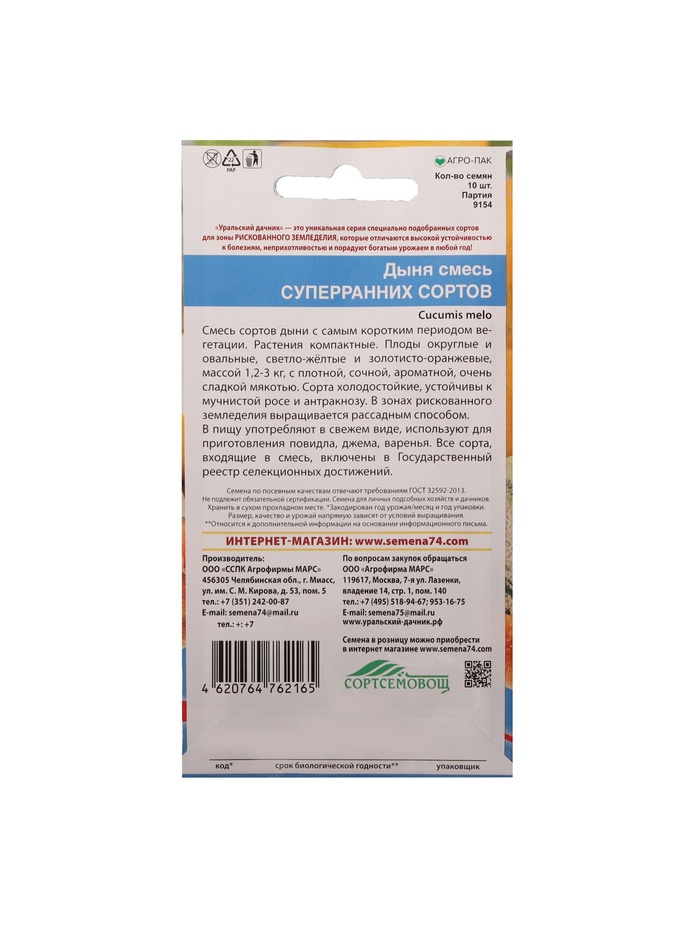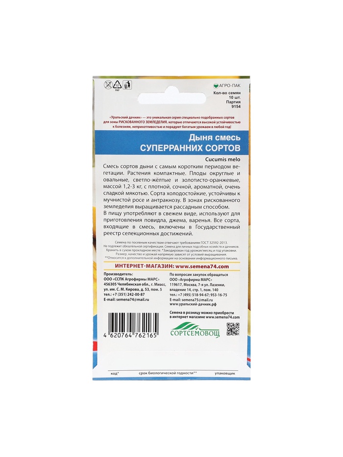 Технические характеристики Набор семян Дыня "Смесь суперраних сортов", 5 шт.
