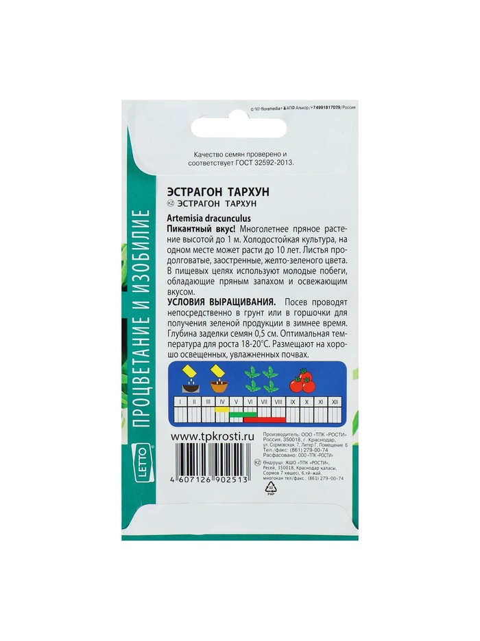 Технические характеристики Набор семян Эстрагон Тархун, 5 шт.