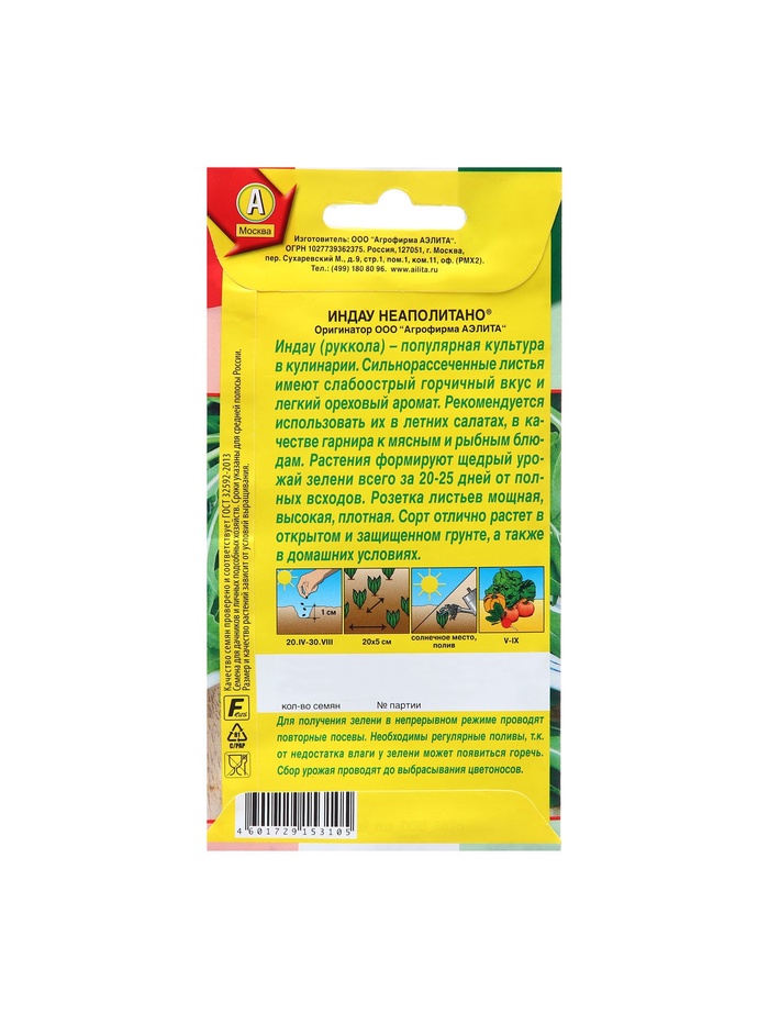 Технические характеристики Набор семян Индау (руккола) Неаполитано, 5 шт.
