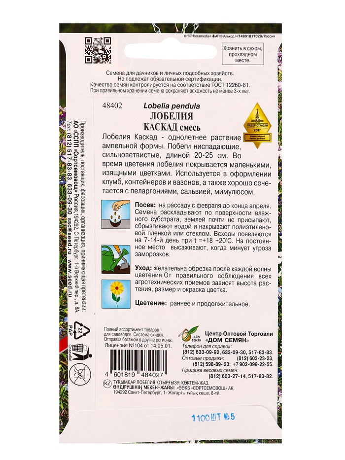 Технические характеристики Набор семян Лобелия «Каскад», смесь