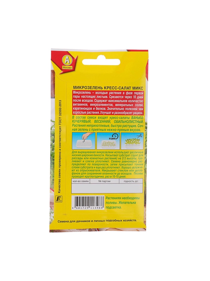 Технические характеристики Набор семян Микрозелень Кресс-салат микс, 5 шт.