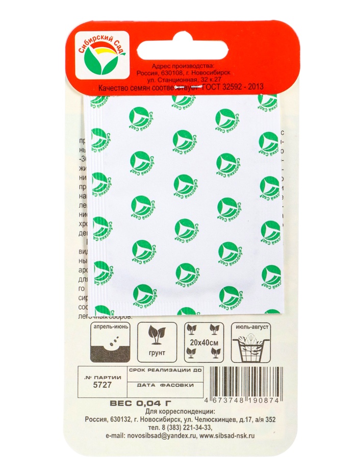 | Материалы из которых произведен товарСемена | Минимальная партия1 | НовинкаДа |