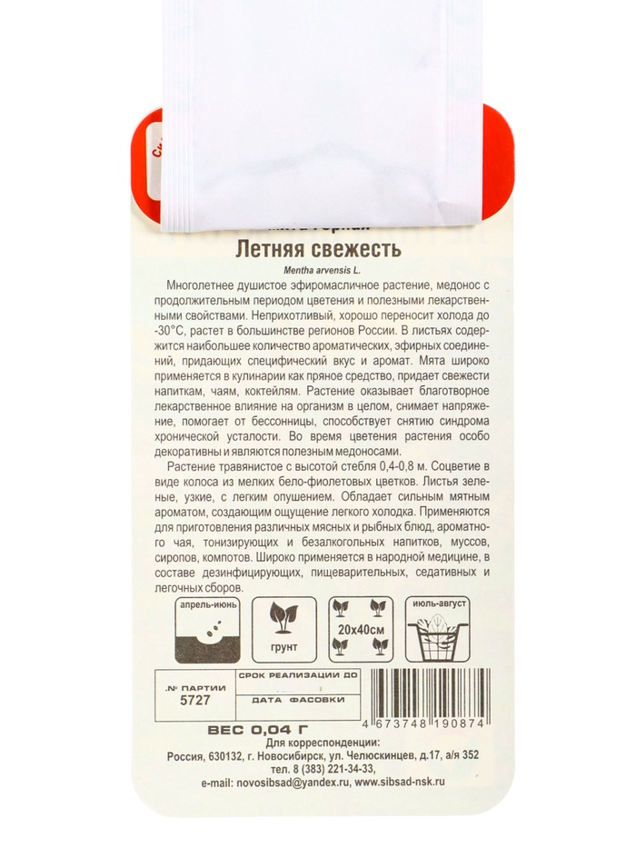 Технические характеристики Набор семян Мята и Мелиса, 2 упаковки