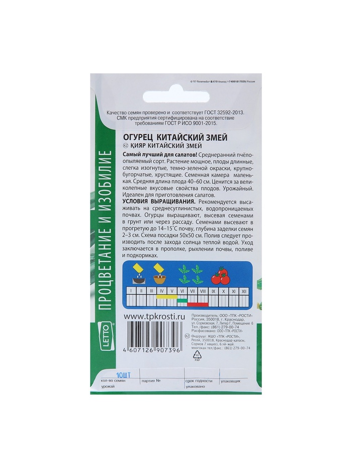 Технические характеристики Набор семян Огурец Китайские змеи, 5 шт.