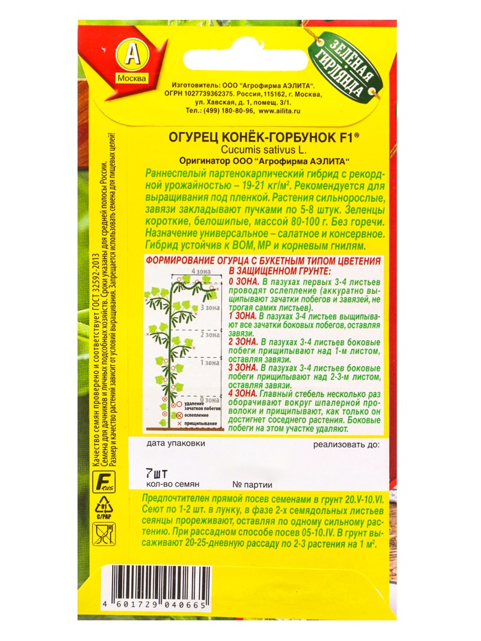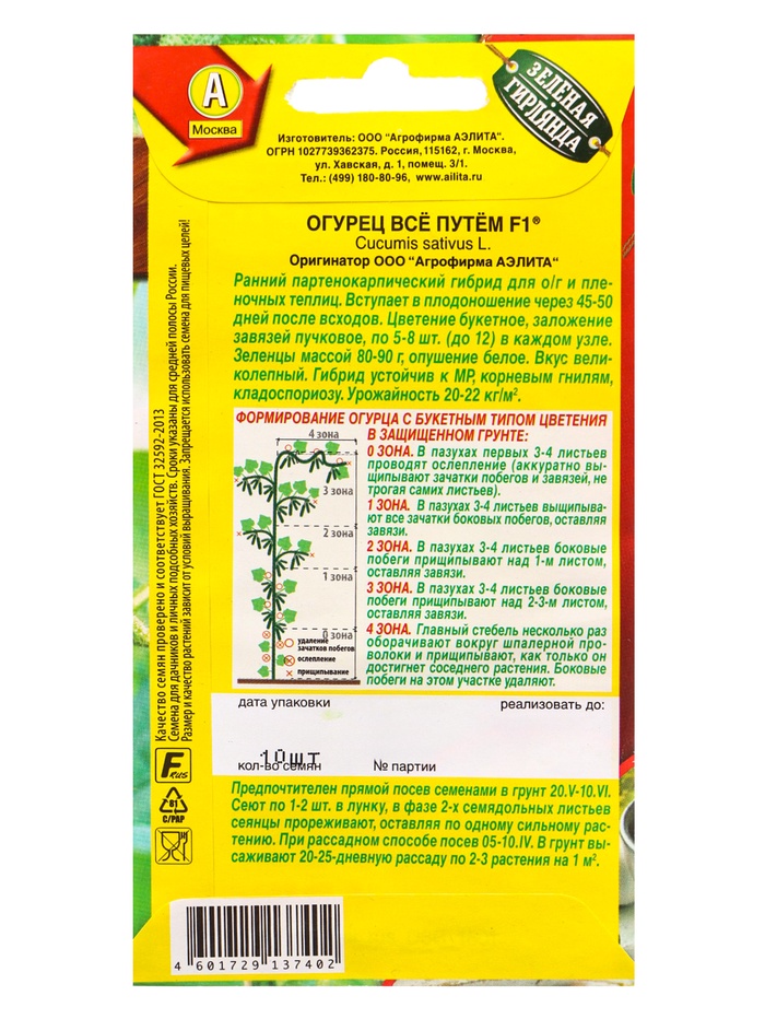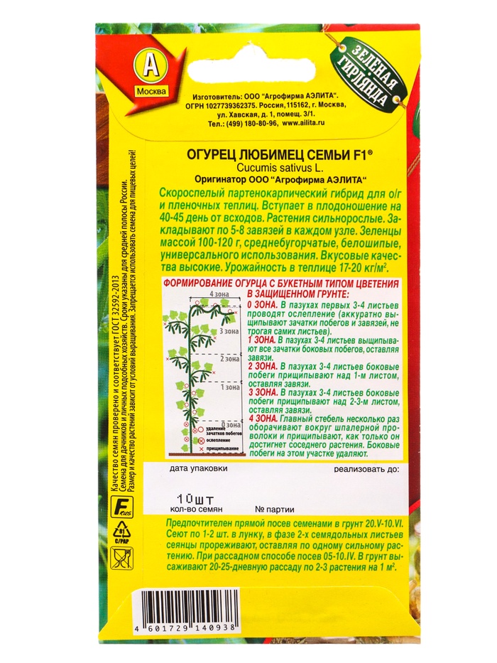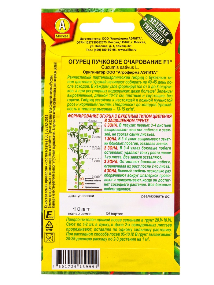 Технические характеристики Набор семян Огурец пучковый, 10 сортов, «Мой выбор»