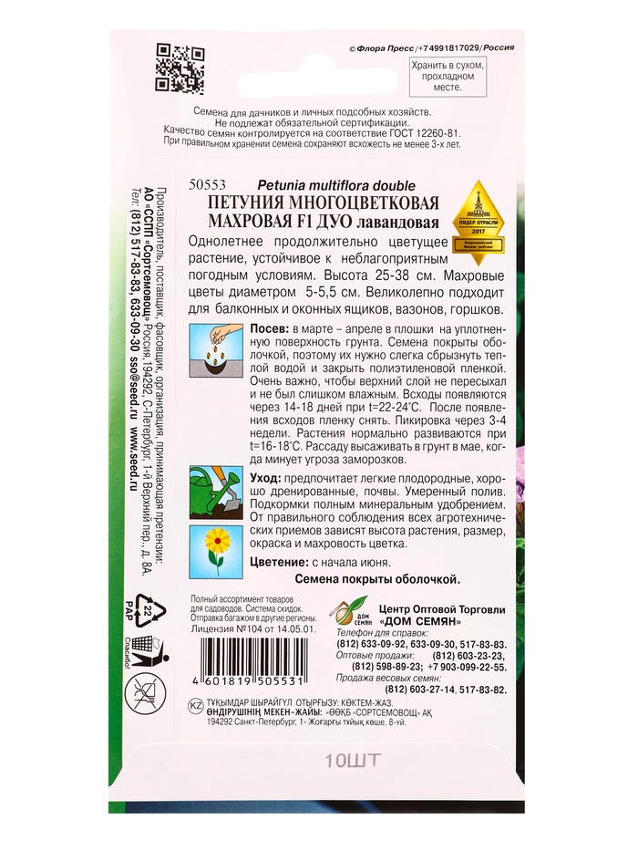 Технические характеристики Набор семян Петуния «Дуо», F1, махровая, многоцветковая, лавандовая