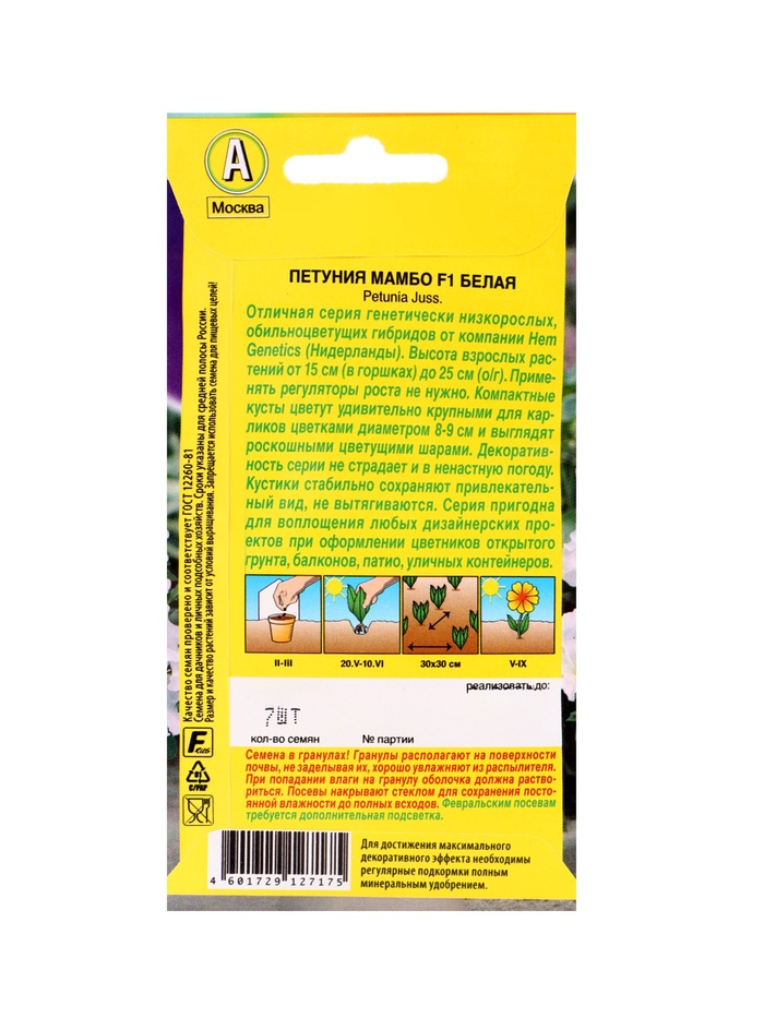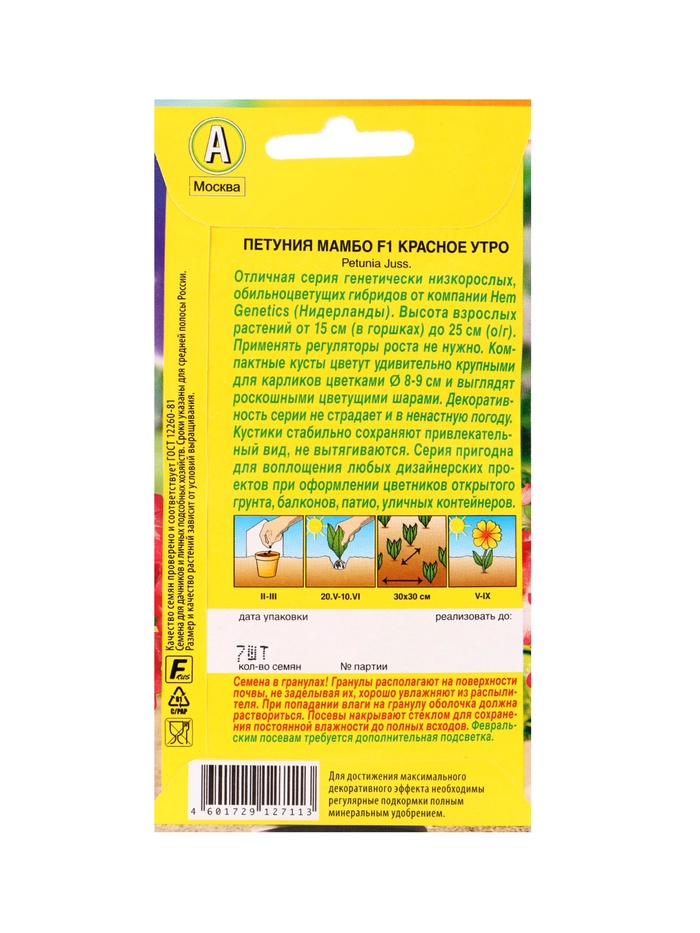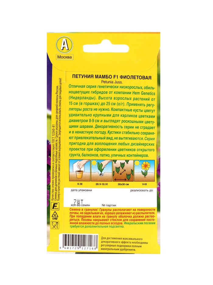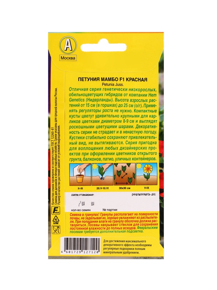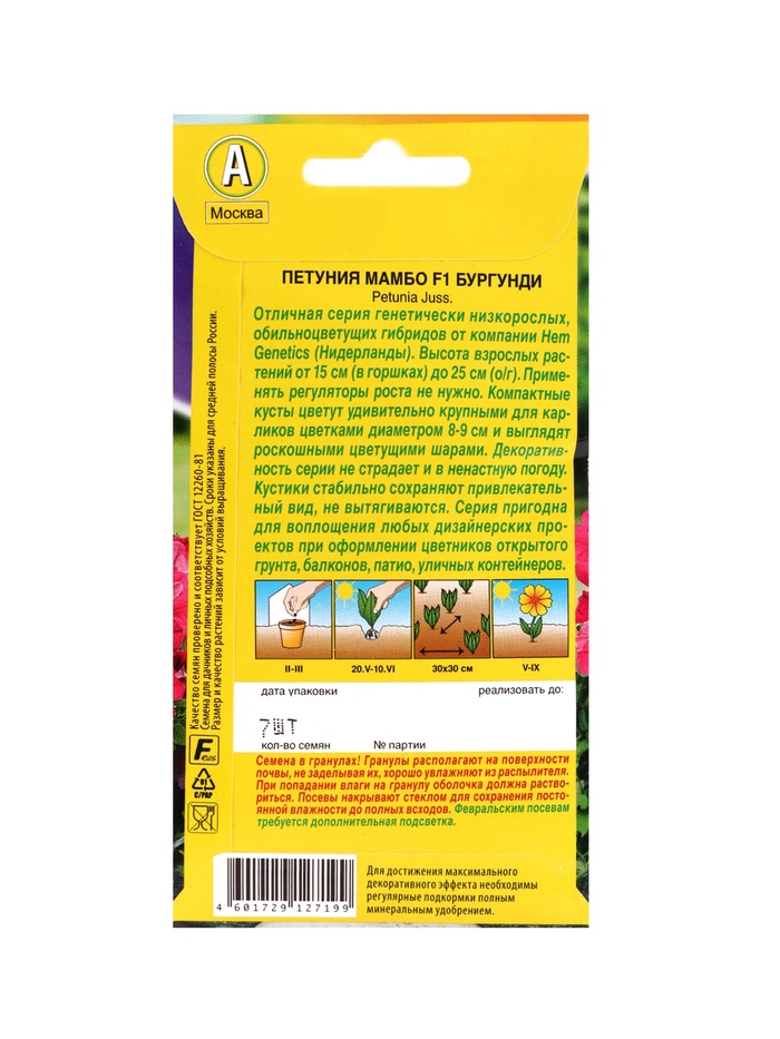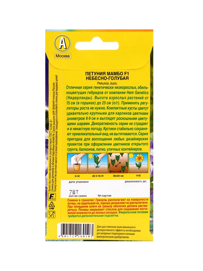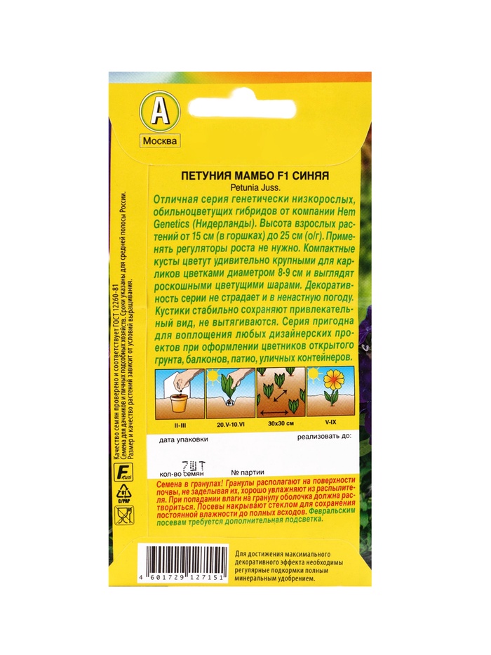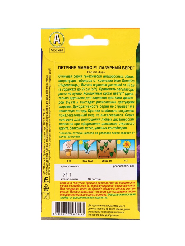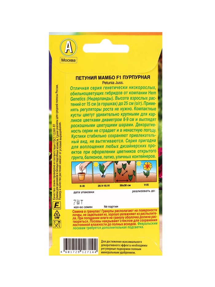 | Материалы из которых произведен товарСемена | Минимальная партия1 | Объем бокса48 |