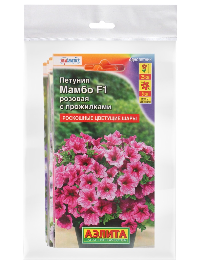 - 14 ярких сортов в одном наборе: внутри вас ждет настоящая цветовая феерия! 14 различных сортов петунии «Мамбо» с самой разнообразной окраской - от классических белых, розовых и красных до насыщенных фиолетовых, пурпурных и даже полосатых. Вы сможете создать уникальные, многогранные композиции.