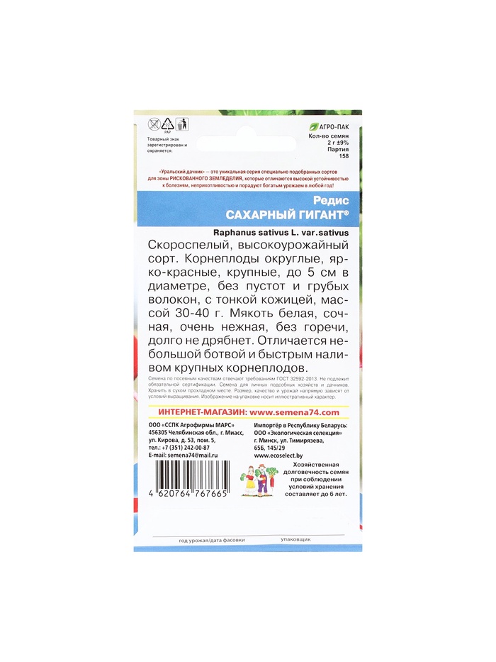 Технические характеристики Набор семян Редис "Сахарный Гигант", 5 шт.