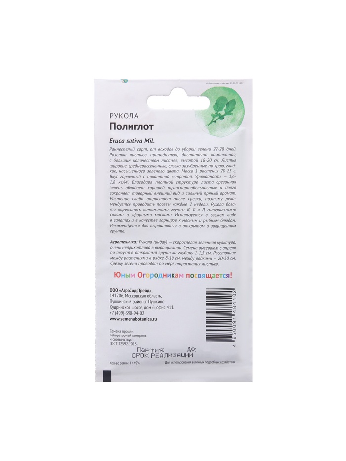 Технические характеристики Набор семян Рукола "Полиглот", 5 шт.