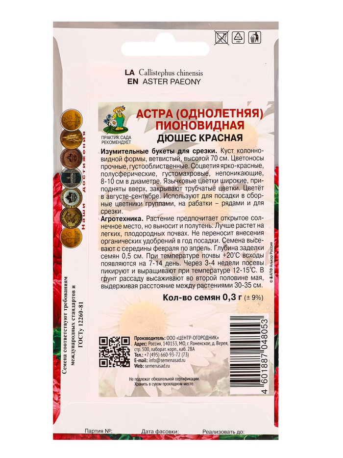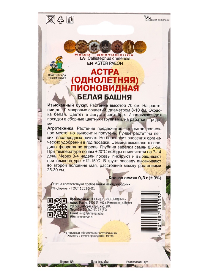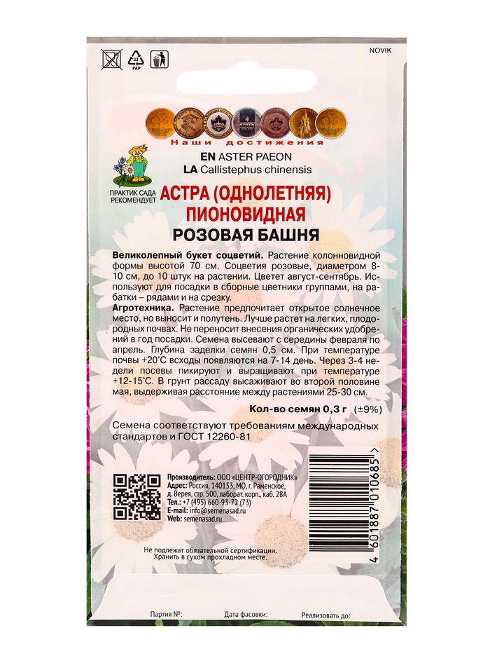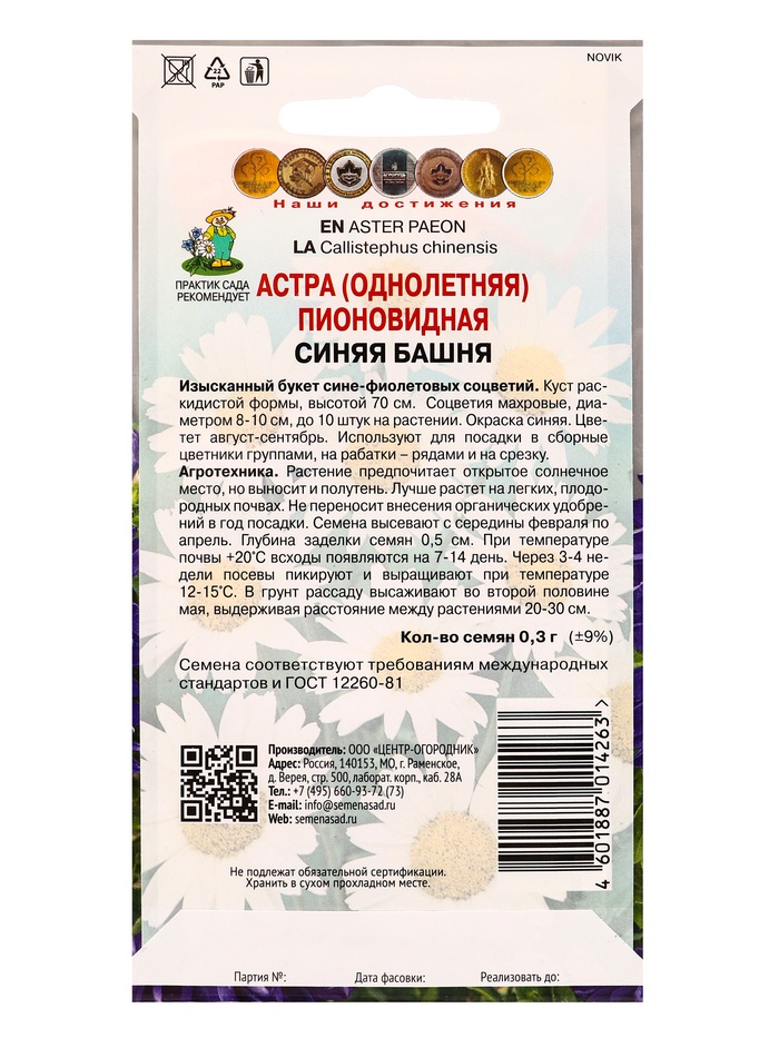 Технические характеристики Набор семян цветов Астра