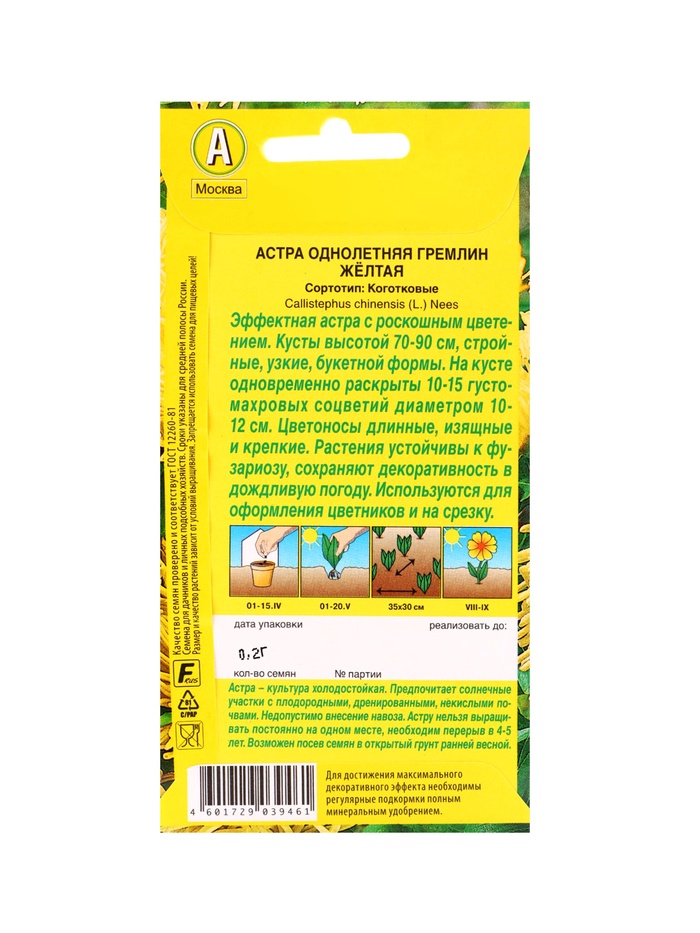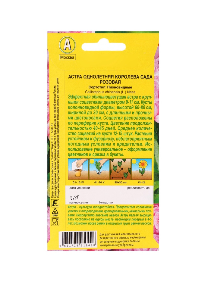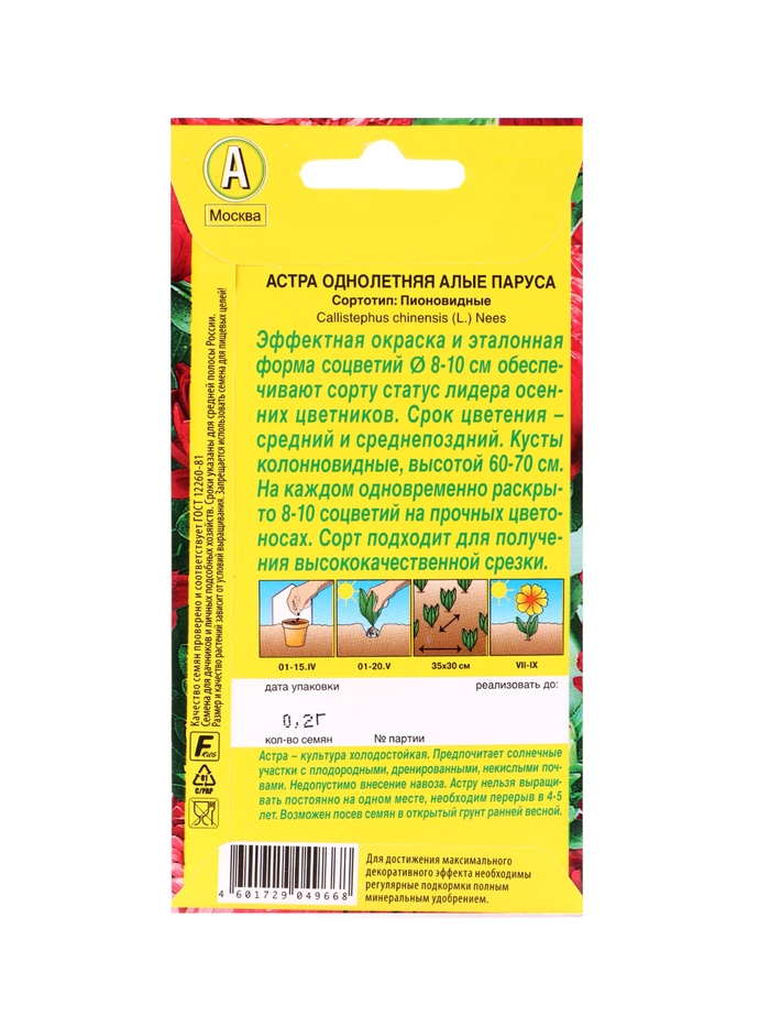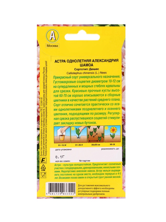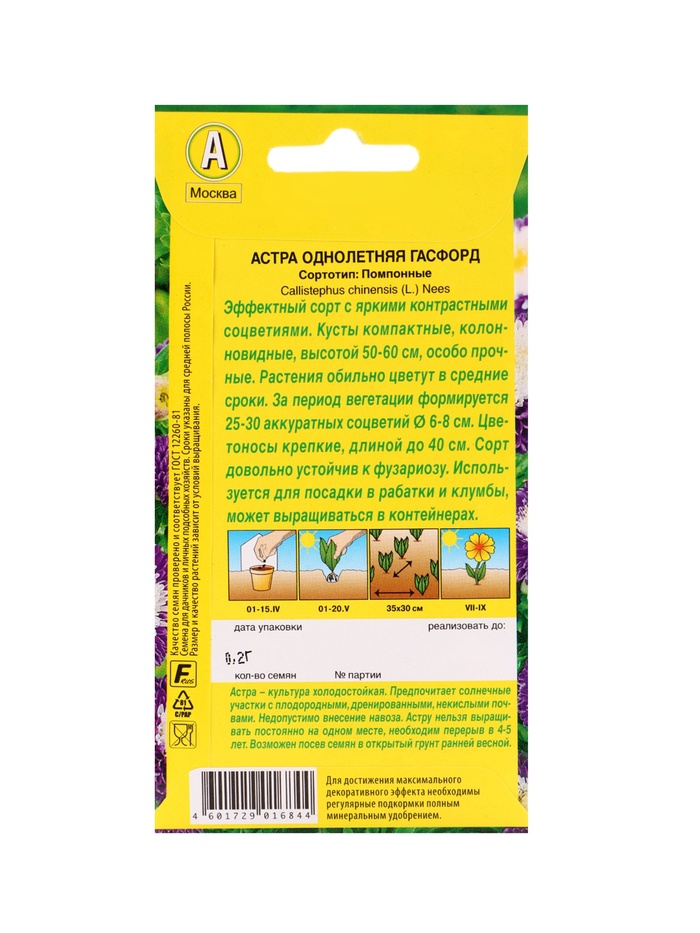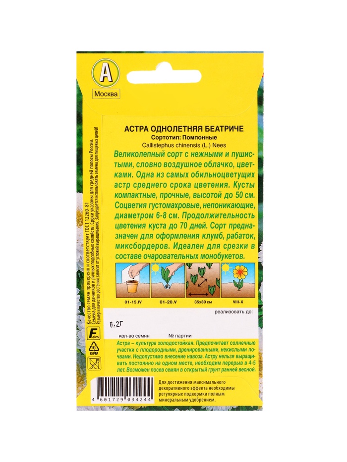 Технические характеристики Набор семян цветов Астра
