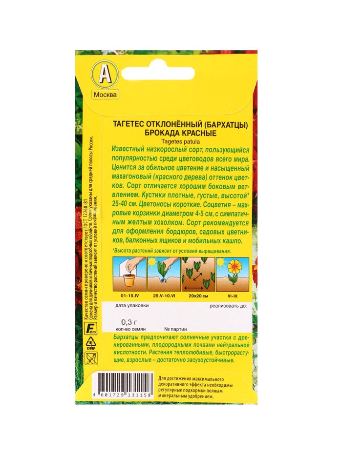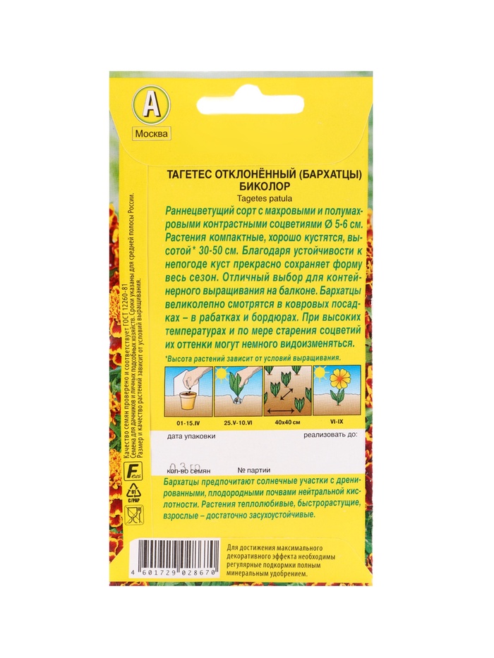 Технические характеристики Набор семян цветов Бархатцы
