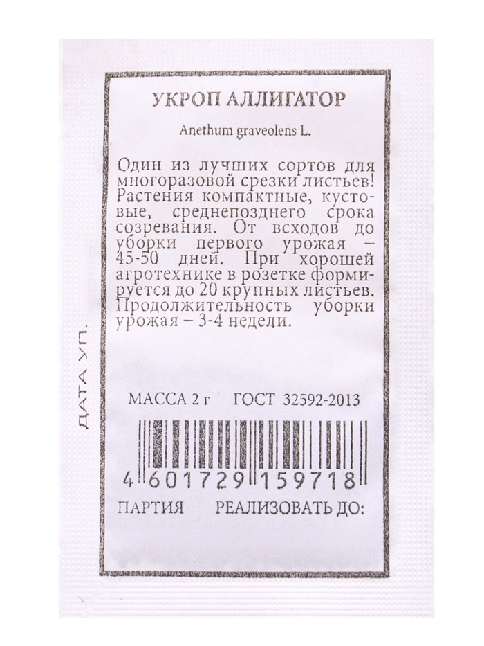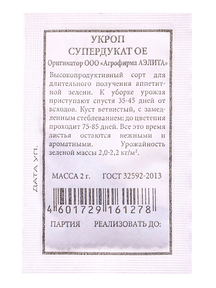 Технические характеристики Набор семян Укроп на зелень и на зонтики, 6 шт., «Мой выбор»