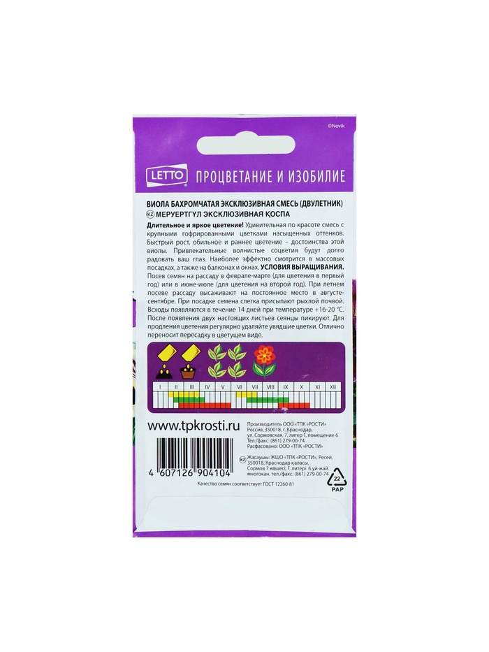 Технические характеристики Набор семян Виола "Эксклюзивная смесь", 5 шт.