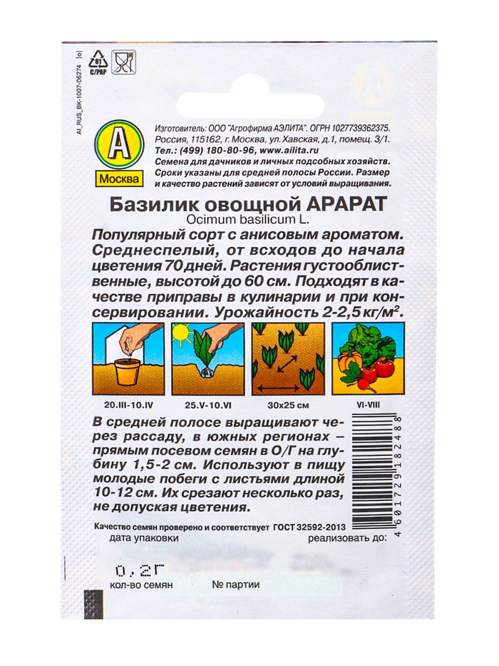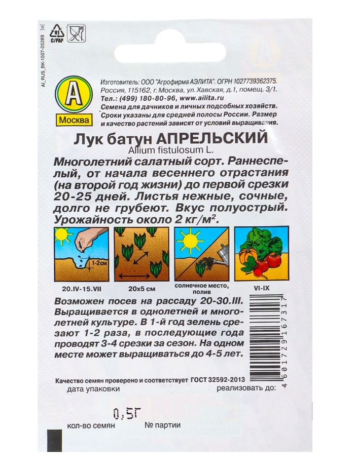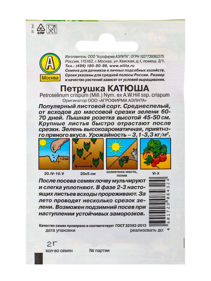 | Материалы из которых произведен товарСемена | Минимальная партия1 | НовинкаДа |