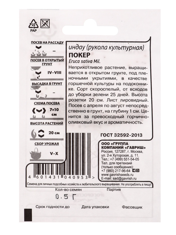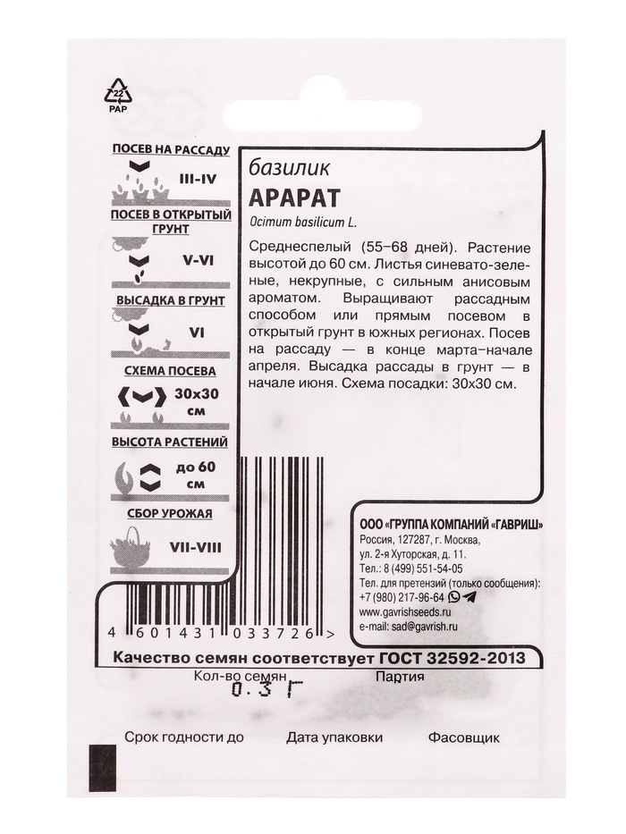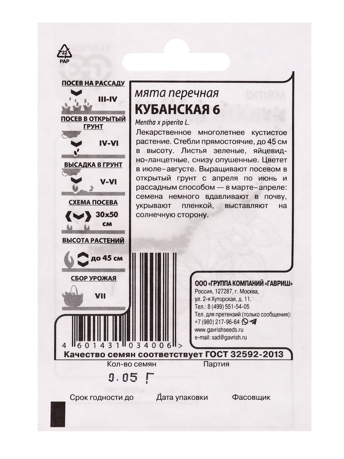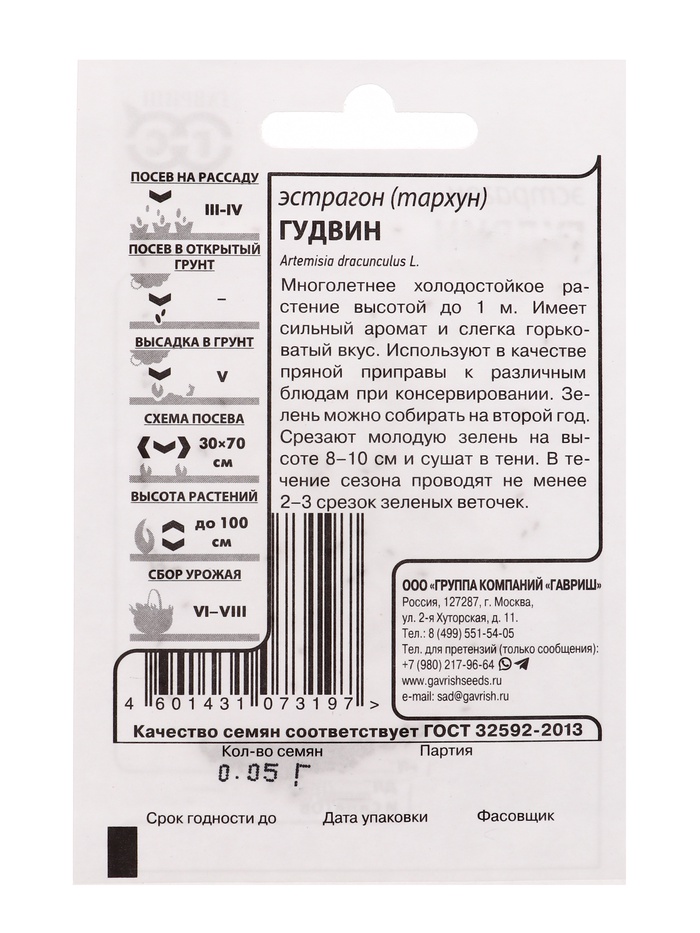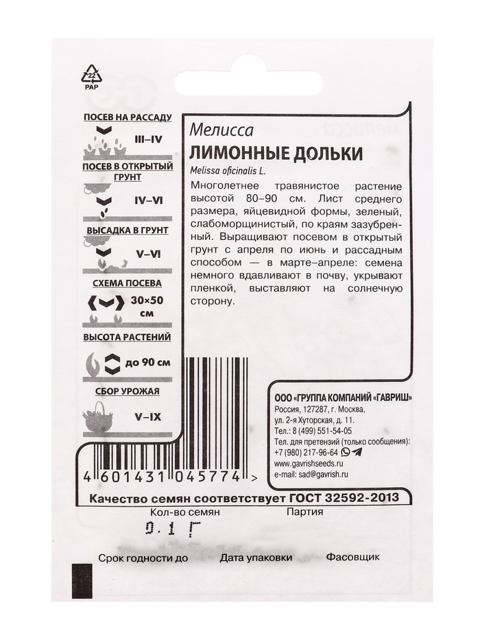 | Материалы из которых произведен товарСемена | Минимальная партия1 | Объем бокса56.64 |