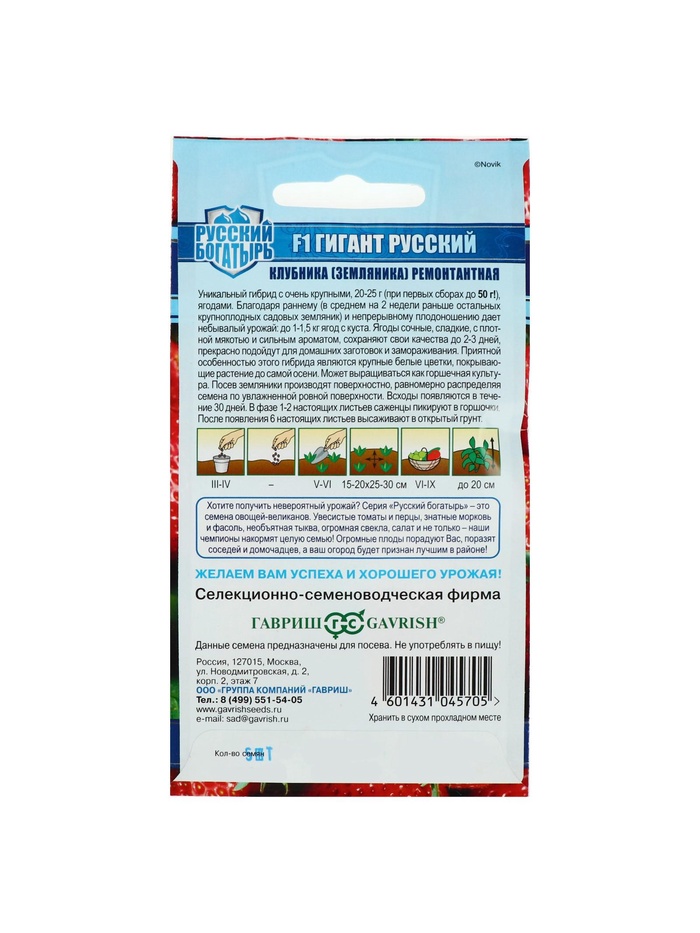 Технические характеристики Набор семян Земляника "Гигант русский", F1, серия Русский богатырь, 3 шт.