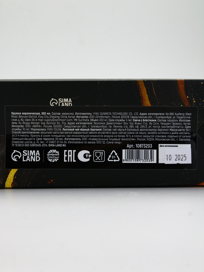 | Составляющие набора | Кружка; Свеча; Чай |