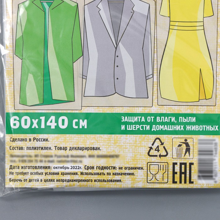 Набор чехлов для хранения одежды, 60×140 см, 5 шт, ПНД