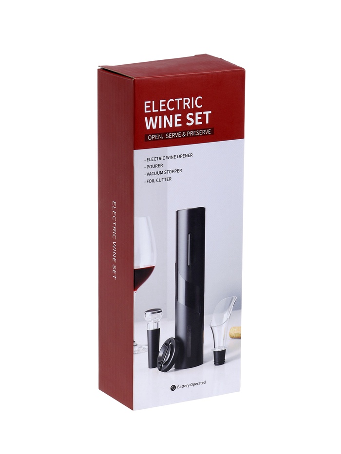 Набор сомелье электрический LSH-04, пробка, аэратор, штопор, от батареек, чёрный