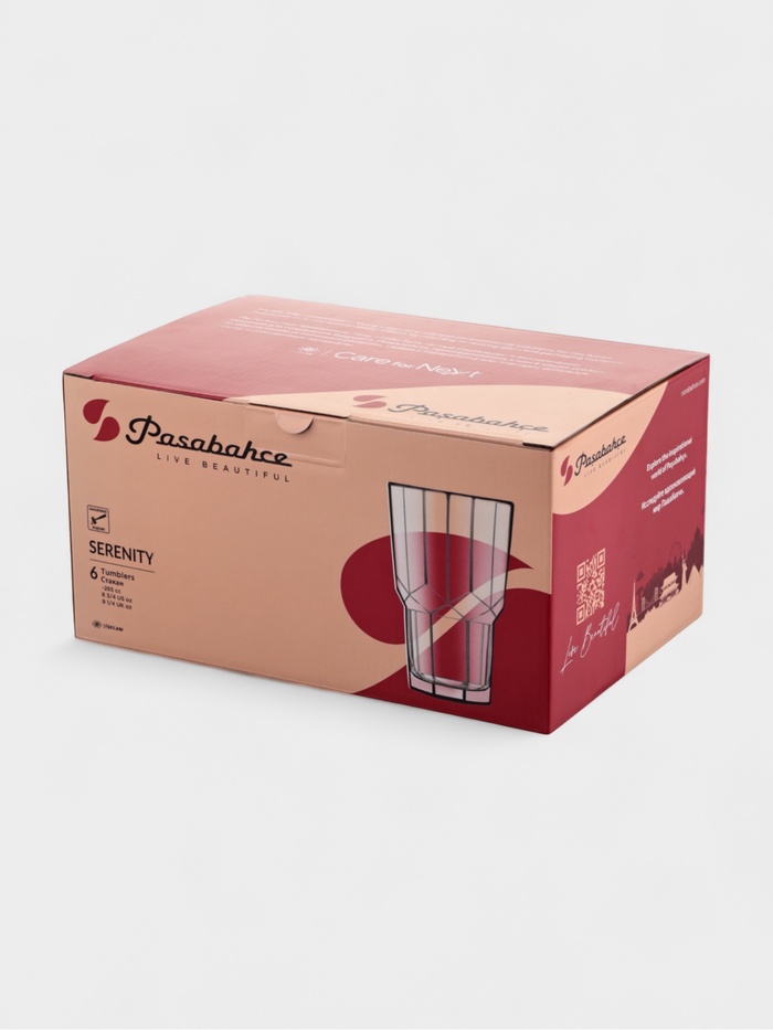 Стаканы Serenity легко вписываются в любой интерьер — от минималистичной кухни до классической столовой. Их можно использовать как часть повседневного сервировочного набора или как базовую посуду для фуршетов и семейных ужинов.