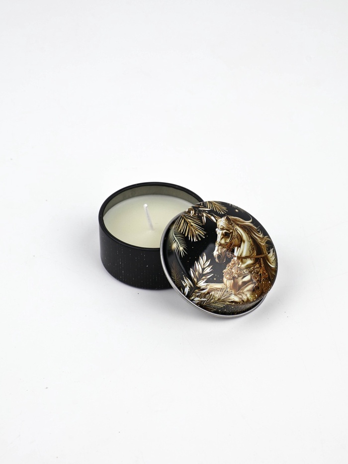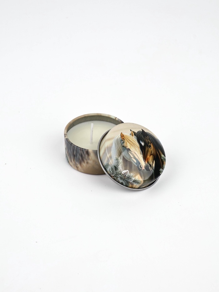 Свечи в железной банке «Лошади», аромат мандарин и еловые ветки, диам 4.8 см, 2 шт.