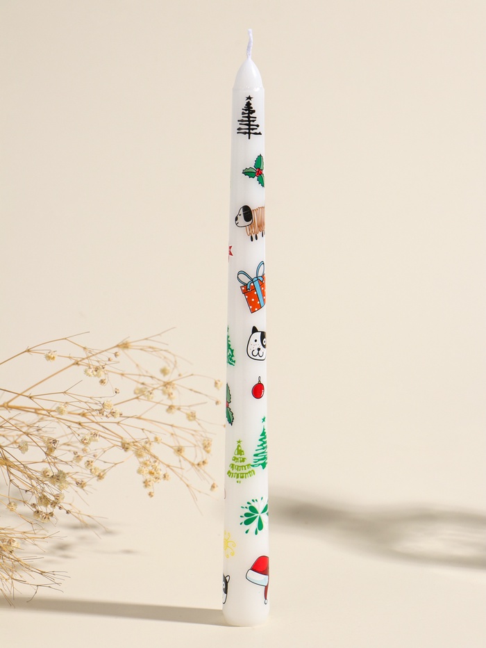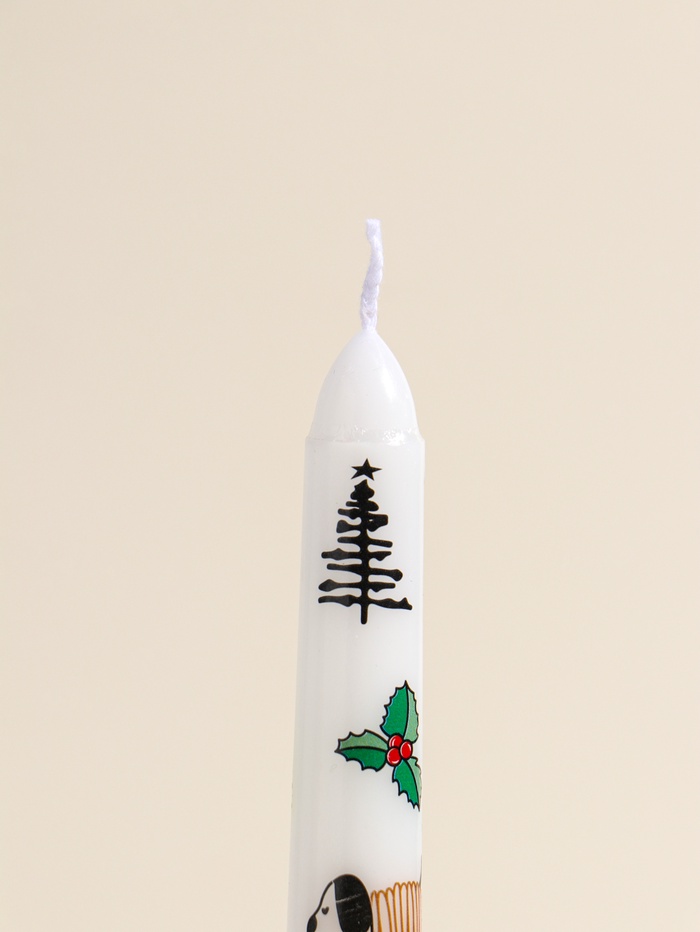 Набор свечей античных, 2,2х25 см, 2 шт "Новогодние пёсики" белые 8х28х2,3 см