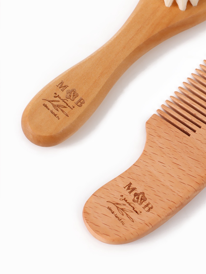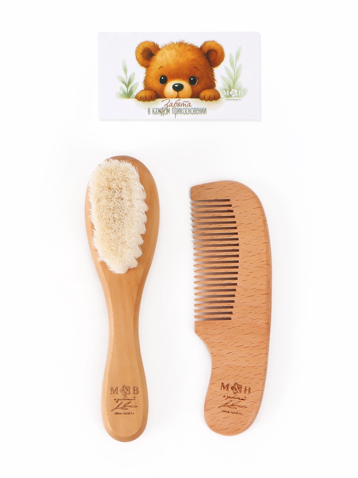 Технические характеристики Расческа детская, деревянная с натуральной щетиной, гребень, набор 2 шт., M&B