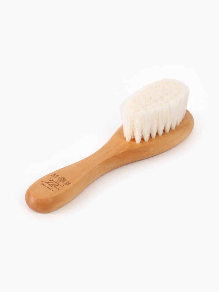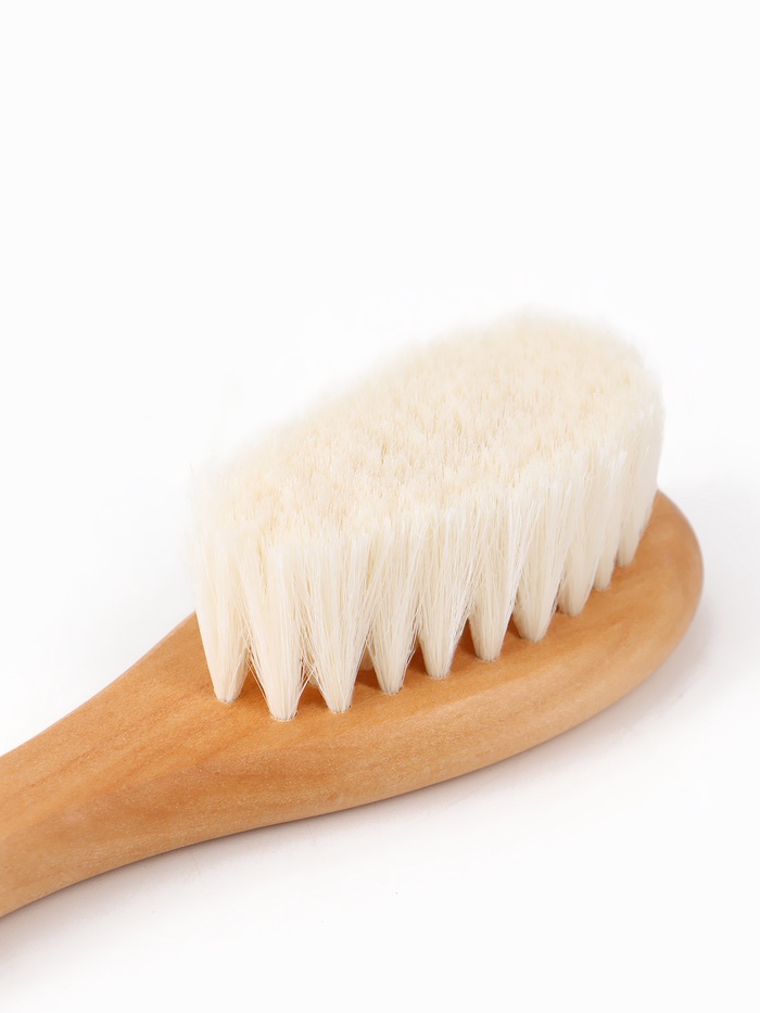 - Безопасная щетина. Мягкая натуральная щетина деликатно расчёсывает волосы, не травмируя нежную кожу младенца.