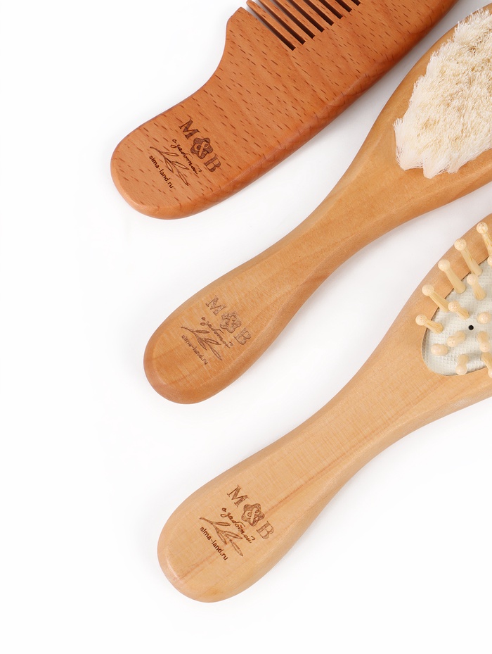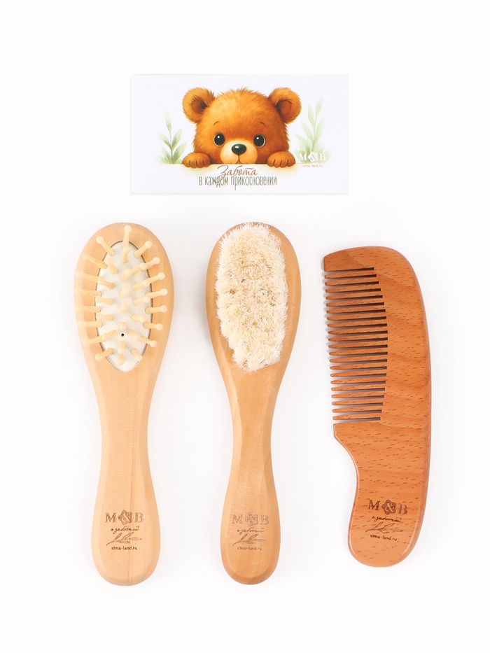 Технические характеристики Расческа детская, деревянная с натуральной щетиной, гребень, массажная, набор 3 шт., M&B