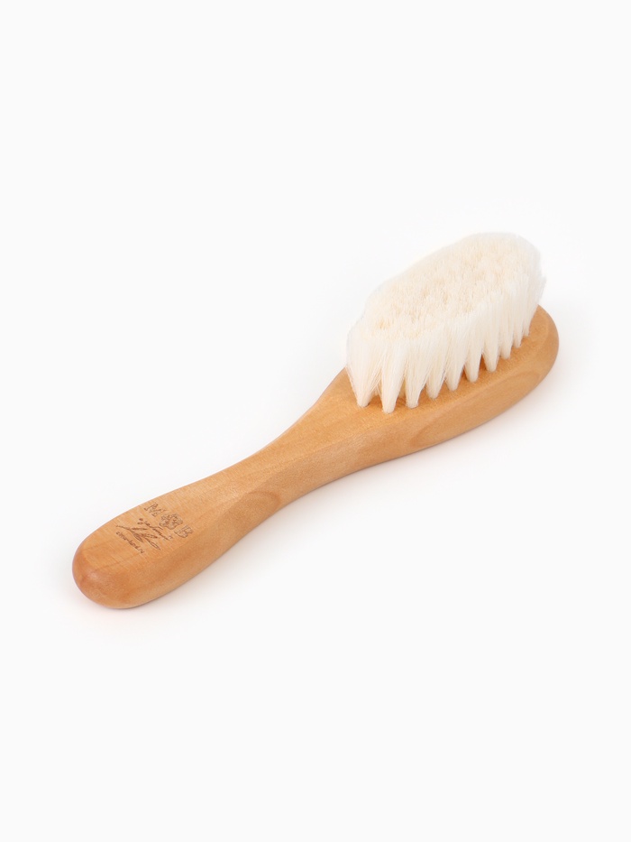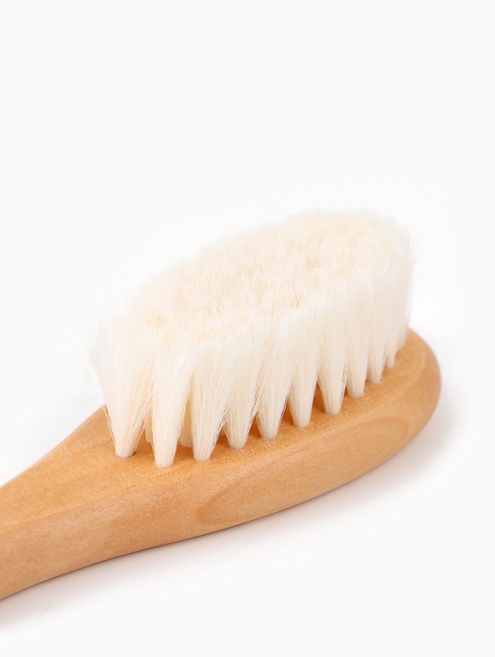 - Безопасная щетина. Мягкая натуральная щетина деликатно расчёсывает волосы, не травмируя нежную кожу младенца.