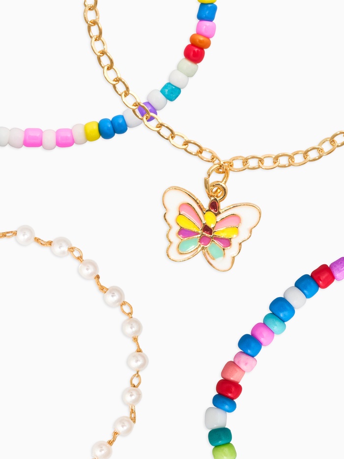 Набор детских браслетов 4 шт. "Выбражулька" тренд, бисер, бабочка, цветные
