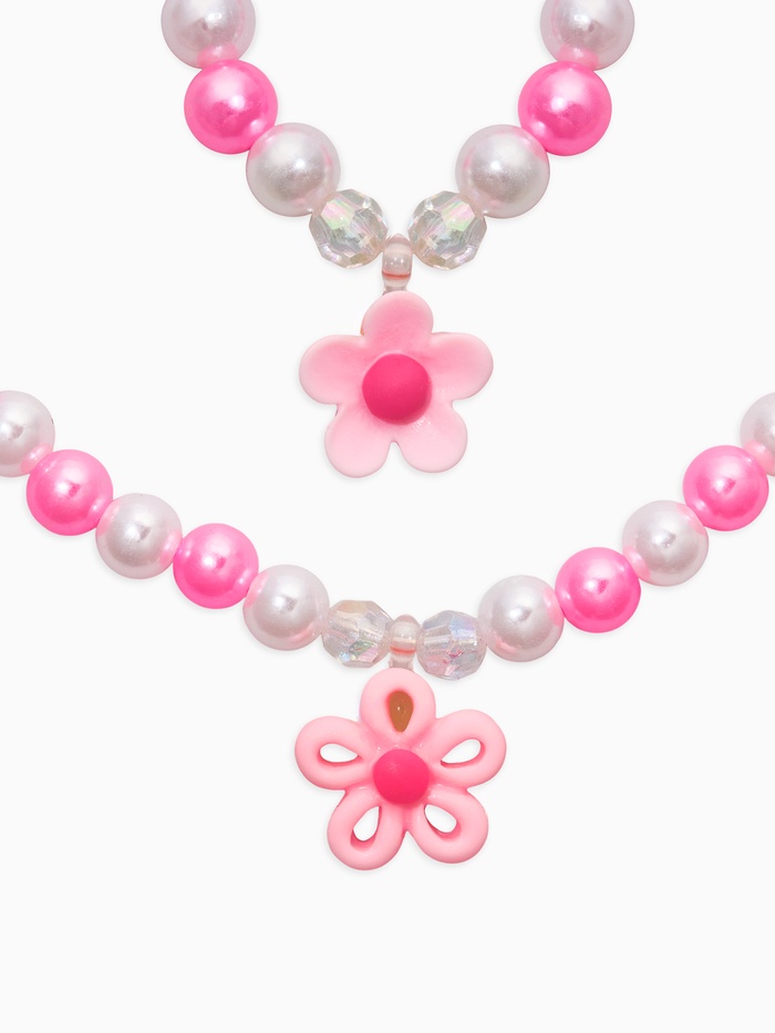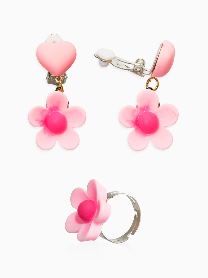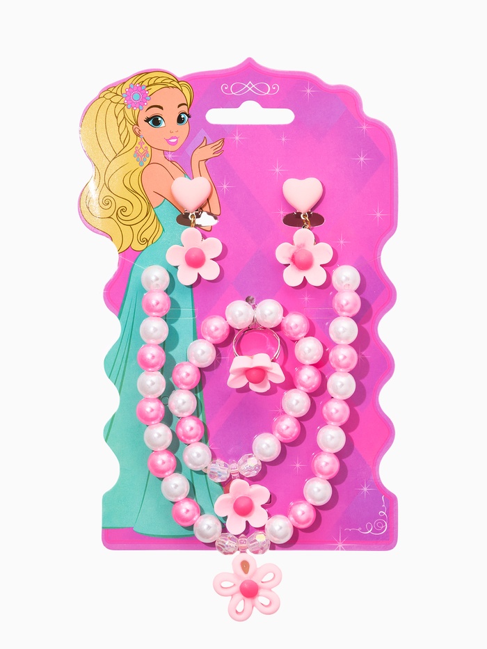 Набор детских украшений «Выбражулька. Цветок», 4 предмета: клипсы, кольцо, бусы, браслет, розовый, белый