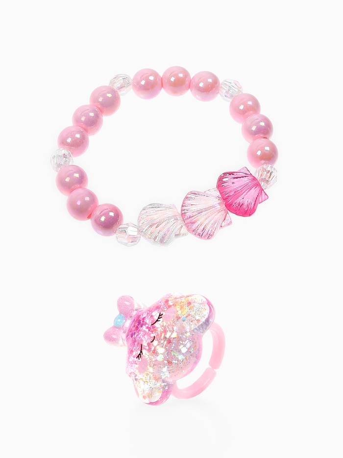 Набор детских украшений «Выбражулька. Ракушка», 2 предмета: кольцо безразмерное, браслет 6 см, розовый